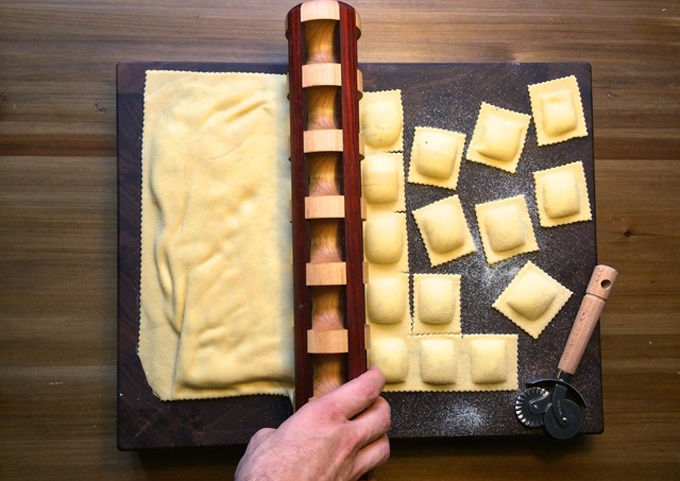 La diferencia práctica de este rodillo con otros diseñados para hacer raviolis de pasta es el tamaño de los huecos y los bordes de la madera, éstos sellan la masa dándole un ancho ideal para cortar fácilmente la pasta manteniéndola bien sellada y garantizando que no se saldrá el relleno cuando se cocine.