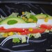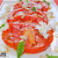 Pela los tomates pera (la cantidad necesaria dependerá de su tamaño), córtalos en cuartos y retira las semillas, después corta cada cuarto en dos o tres tiras largas, reserva. Pela la cebolla tierna y córtala de forma longitudinal y muy fina.