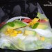 Coloca la lechuga, las tiras de tomate, la cebolla, el maíz, el requesón, el aguacate, las nueces y la hierbabuena, añade una pizca de sal y si lo deseas, un hilo de aceite de oliva virgen extra. Vuelve los laterales de la oblea de papel de arroz sobre el relleno y a continuación haz lo mismo con la parte inferior, colócala sobre el relleno.