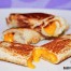 Coloca una loncha de queso sobre cada rebanada y forma rollitos, poniendo el punto de unión hacia abajo. Calienta una sartén con un poco de aceite de oliva virgen extra o mantequilla a temperatura moderada y pon a dorar los rollitos de queso cheddar.