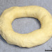 Si la masa se encoje después de estirarla para hacer el roscón, déjala reposar unos minutos, habrá perdido tensión y se podrá estirar fácilmente. El agujero debe ser el doble de grande de lo que después se espera en un Roscón de Reyes. Cubre la masa de nuevo con el trapo para que vuelva a fermentar, déjala unas dos horas o hasta que doble su volumen, en un lugar cálido (unos 24º C) y sin corrientes de aire.
