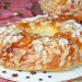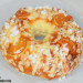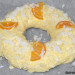 Enciende el horno a 200º C con calor arriba y abajo. Pinta la masa con el huevo batido con unas gotas de leche para aligerarlo, coloca la naranja confitada y la almendra. Moja el azúcar con agua o con un poco de agua de azahar y reparte sobre el roscón las pequeñas rocas que se forman.