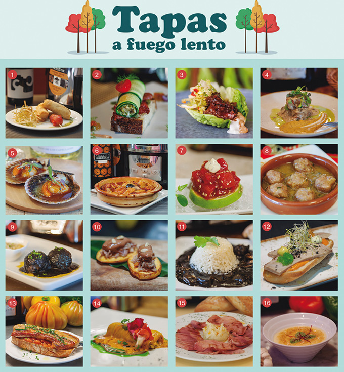 Pero además la cosa no va a ir de tapas o pinchos que se preparan con un salteado o con un ensamblado de ingredientes, este evento quiere promover la cocina lenta, así que (en principio) son elaboraciones culinarias en miniatura, o en pequeñas raciones en algunos casos, que se han cocinado a fuego lento.