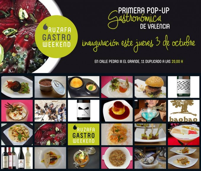 La denominada ‘primera Pop-Up Gastronómica de Valencia‘ va a celebrarse en el barrio valenciano de Ruzafa el próximo fin de semana, concretamente del 3 al 6 de octubre de 2013. Se han organizado distintas actividades para todas las familias, incluidos los niños, el escenario de este evento gastronómico lúdico y educativo será al aire libre, en Ruzafa Gallery.