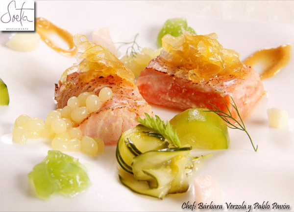 Siguen llegándonos buenas noticias desde Brasil, donde Bárbara Verzola y Pablo Pavón, al frente del Restaurante Soeta, continúan consolidándose y disfrutando de su trabajo y de los frutos que obtienen de su pasión, el restaurante se llena, son partícipes de los congresos del país, galardonados con importantes premios… desde este lado tenemos la gran fortuna de seguir descubriendo su cocina gracias a que comparten sus creaciones en la sección de Recetas de los Chefs, hoy con esta receta de Salmón con miso.
