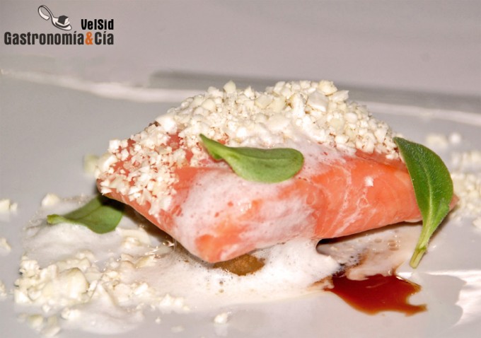 A continuación podéis ver cómo hacerla, el ahumado del salmón es sin calor, y después se envasa al vacío y se ‘cocina’ en Roner a muy baja temperatura, con lo que mantiene el pescado crudo pero caliente. Y así se sirve el Salmón tibio y ahumado con coliflor espumosa y en cuscús de Nacho Manzano.