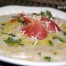Salmorejo con berberechos y berenjena encurtida, una receta perfecta para comer rico, sano y ligero