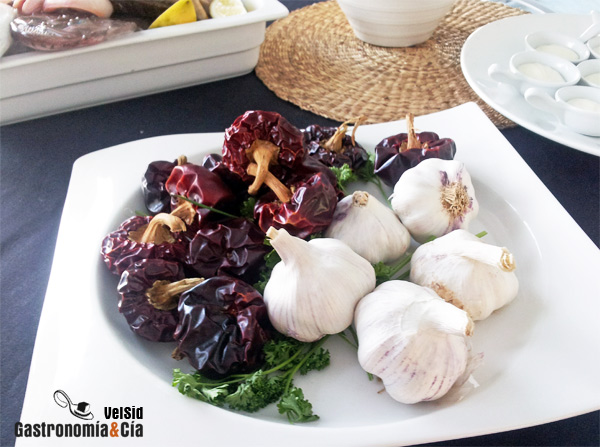 Mari Carmen Vélez, chef del restaurante La Sirena (Petrer) y Quinta Lacy (Elda), también nos abrió las puertas de su cocina y un sinfín de conocimiento que a los que disfrutamos cocinando nos parece el mejor regalo. Con ella aprendimos otra forma de hacer este mojo alicantino, en este caso sólo con los tres ingredientes principales, tomate, ajo y ñora. Nos explicó las proporciones aproximadas, un kilo de tomate, seis o siete ajos (sin germen) con posibilidad de aumentar, según gustos, y cuatro ñoras.