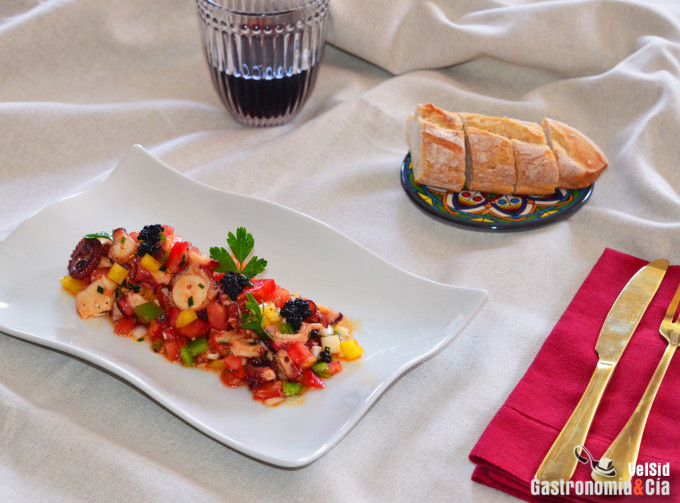 Os proponemos probar esta receta básica de salpicón de pulpo y también que hagáis algunas versiones que hacen que sea un plato enriquecido, por ejemplo, añadiendo unos garbanzos cocidos, y si incorporáis aguacate cortado en daditos, bordaréis la comida. El salpicón de pulpo o pulpo en vinagreta también puede ser un perfecto complemento para hacer una ensalada de pasta, de arroz, de patata… Así que no debe faltar en vuestro recetario.