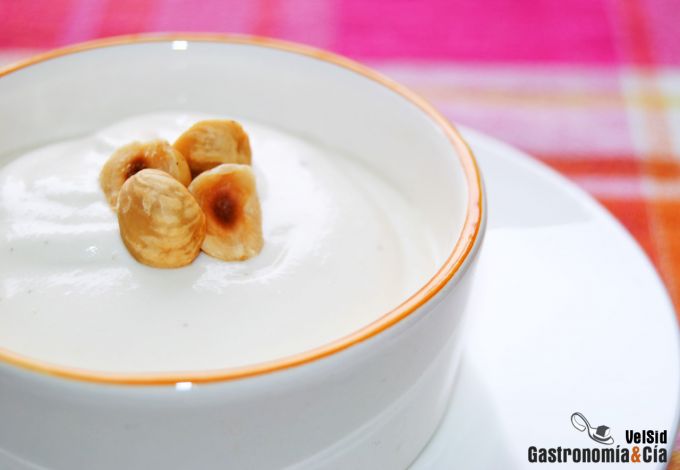 Trocea el rulo de cabra y ponlo en el vaso de la batidora, añade el queso batido (con una textura similar a la del yogur o algo más ligera), la miel, la salsa inglesa y el coñac, tritura hasta obtener una crema fina.