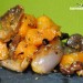 Finalmente moja con el caldo y deja cocer hasta que éste se evapore y la calabaza esté tierna, juega con la tapa y la temperatura del fuego si necesitas más tiempo de cocción en el caso de que te guste la calabaza bien tierna, aunque deberás controlar entonces si las setas deben incluirse más tarde para que no se exceda su cocción.