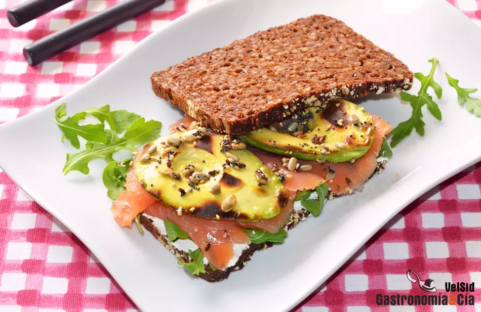 El aguacate normalmente se consume fresco, crudo, de modo que ofrece una textura muy tierna y cremosa si está en su punto de maduración, y es una delicia. Pero, ¿habéis probado a cocinarlo brevemente? Se convierte en otra fruta totalmente distinta, tanto en sabor como en textura, pero es igualmente rico. Lo hemos incorporado en pizzas, ensaladas y algunos guisos ligeros, y también en bocadillos como el que hoy queremos proponeros que probéis, nuestro Sándwich de aguacate a la parrilla con salmón ahumado y kéfir.