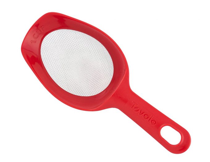 Para los usuarios de tazas o cucharas medidoras que busquen uno de estos accesorios que sea original y que tenga más funcionalidades, puede ser ideal la que podéis ver en las fotos, se llama Scoop & Sift, y es una cuchara medidora y un tamizador, un dos en uno de la firma Tovolo, la misma que creó los recipientes para helados que tan bien nos irán de cara a este verano.