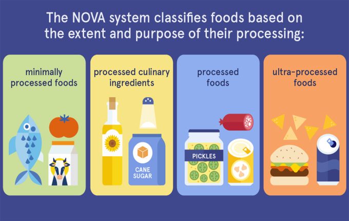 La clasificación NOVA o escala NOVA divide los alimentos en cuatro grupos dependiendo de su grado de procesamiento. El sistema fue desarrollado en Brasil y rápidamente fue adoptado como una guía de referencia por diferentes organizaciones, como la Organización Panamericana de la Salud (OPS) o la Organización Mundial de la Salud (OMS). Como decíamos, la clasificación categoriza los alimentos en cuatro niveles: alimentos sin procesar o mínimamente procesados, ingredientes culinarios procesados, alimentos procesados y alimentos ultraprocesados. Cada categoría representa un nivel de alteración que un alimento ha sufrido desde su estado natural, hasta que se ha convertido en un producto alimenticio de consumo.