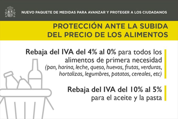 El próximo 30 de junio era la fecha prevista para la finalización de la rebaja del IVA en los alimentos básicos con la que el gobierno español tenía intención de ayudar a todos los consumidores en general y a las familias con economías más deprimidas en especial. Recordemos que en este post os transmitimos la iniciativa propuesta por el equipo de gobierno de Pedro Sánchez, el IVA de alimentos básicos pasaba del 4% al 0%, y en alimentos como el aceite y la pasta se reducía del 10% al 5%.
