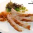 Sirve el cuscús de manzana y ciruelas como cama o a un lado del plato. Corta el secreto de cerdo en tiras anchas y colócalas recién hechas en el plato. Añade un poco de sal Maldon sobre la carne y si lo deseas, termina con un hilo de aceite de oliva virgen extra.