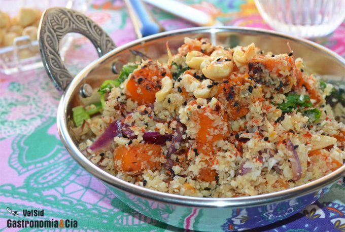Cuscús de coliflor con calabaza tostada y avellanas