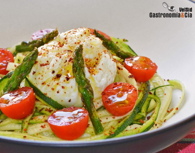 Los espaguetis o tallarines de calabacín empezaron a hacerse hueco como un sustituto parcial de la pasta, es decir, para reducir un poco la cantidad de pasta en forma de espaguetis que se servía en un plato, se engañaba a la vista con la verdura, con los espaguetis de calabacín. Así había igual o más volumen en el plato, pero menos calorías y más vitaminas. Pero al final los espaguetis de calabacín se han metido en prácticamente todas las cocinas como un ingrediente protagonista más, y con posibilidad de crear infinidad de platos. Hoy os dejamos sólo unas pocas ideas, son seis recetas de espaguetis de calabacín para las comidas y cenas ligeras de verano, pero con ellas ya tenéis para probar esta hortaliza de distintas formas.