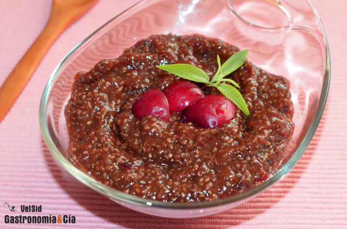 Mermelada de cerezas y semillas de chía, en tres pasos y en cinco minutos