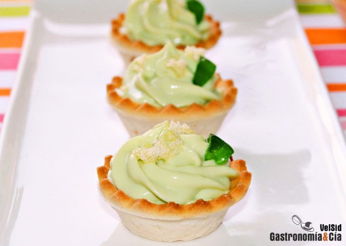 Tartaletas rellenas de crema, kiwi enano y aceite de bergamota