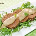 Sirve el seitán sobre una cama de rúcula aderezada al gusto, y reparte la salsa de plátano sobre los medallones. ¡Buen provecho!