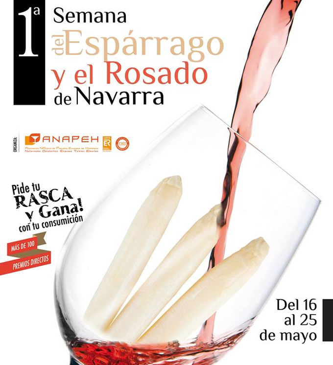 La Asociación Navarra de Pequeña Empresa de Hostelería (ANAPEH) ha presentado la primera Semana del Espárrago y el Rosado de Navarra, un evento enogastronómico que reúne dos de las joyas de la Comunidad Foral, el espárrago blanco y el vino rosado, para ofrecerlas en armonía a los consumidores. Para ello, cuentan con una veintena de establecimientos de hostelería que ofrecerán un pincho o una degustación con espárrago de Navarra en armonía con uno de los vinos rosados de la D.O. Navarra.