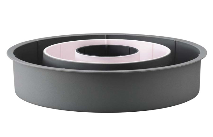 En la foto podéis ver un set de moldes para hacer bizcochos de tres sabores, entre otras cosas. Se trata de los moldes Rig Tig de Stelton, que se compone de tres moldes de silicona de distinto diámetro, por lo que se pueden introducir uno dentro de otro.