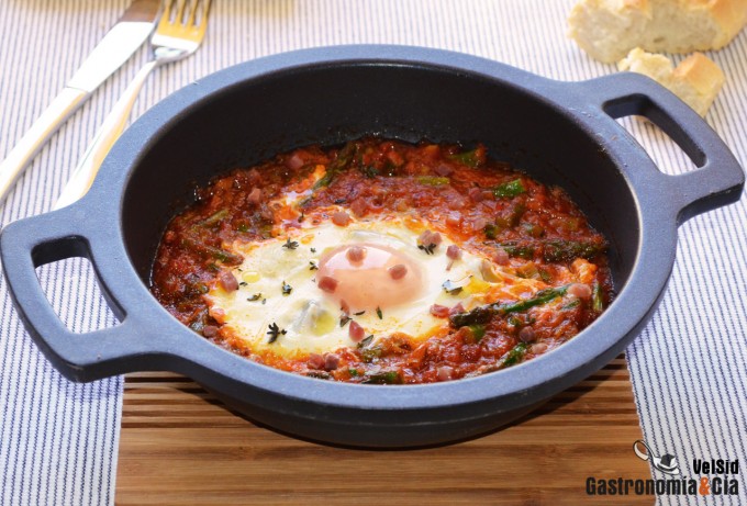 La elaboración es muy sencilla, y si tenéis preparada la salsa de tomate con antelación, pues además es muy rápida. Como ya os comentamos anteriormente, si tenéis tajine podéis cocinar este plato en él, y si no, una sartén o cazuela baja de hierro son ideales, aunque siempre se puede adaptar a los recipientes de cocción que tengáis, seguro que disfrutaréis con este plato de huevos con tomate, espárragos y jamón.