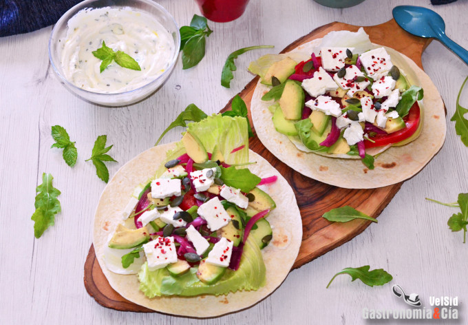 Wrap de queso feta, aguacate y salsa de yogur