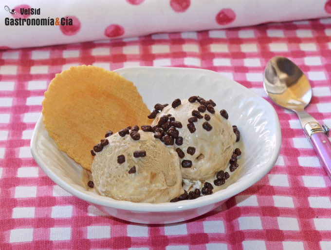 Aprovechamos para volver a comentar la cuestión de la dureza de los helados que se hacen en casa, otra cosa es la cremosidad de la preparación. El caso es que el congelador en el que guardamos el helado suele estar a -20º C, por eso el helado sale como una piedra, mientras que en la heladería artesana nos sirven un helado cremoso fácil de coger con la cuchara, pero con cuerpo, y es que la temperatura de servicio del helado es de unos -10º C o -12º C, fijaos la diferencia, por eso es recomendable dejar el helado fuera del congelador unos minutos antes de servirlo.