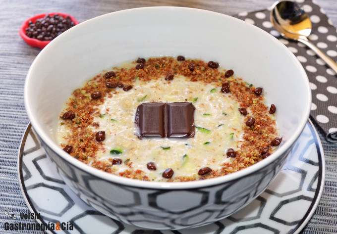 Zoats o gachas de avena con calabacín, chocolate y semillas