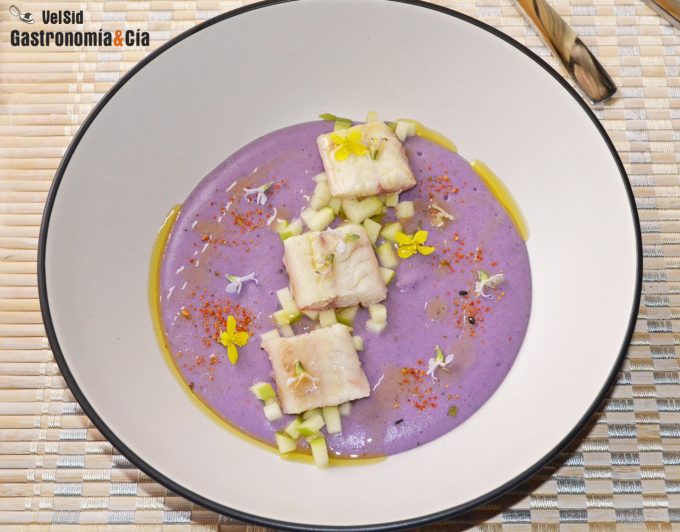 Pues bien, ilustrando este post podéis ver un puré de patata violeta con anguila ahumada, también lleva especias, leche, daditos de manzana… Hacer de este plato uno vegetariano sin prescindir de la ración de proteínas es tan sencillo como sustituir la anguila por unas lonchas gruesas de tempeh o tofu que se puede marinar con salsa de soja y cocinar a la plancha. Se disponen del mismo modo en el plato y el resultado, creednos, es una delicia y además es un plato nutritivo y saludable.