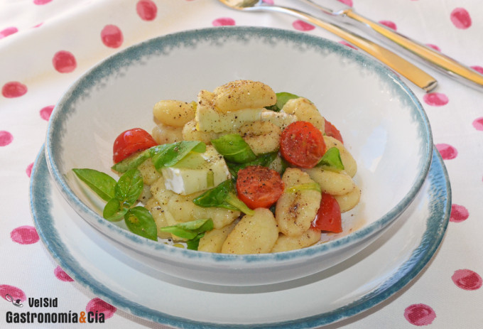 Gnocchi con tomate fresco, queso brie y pimienta de Jamaica