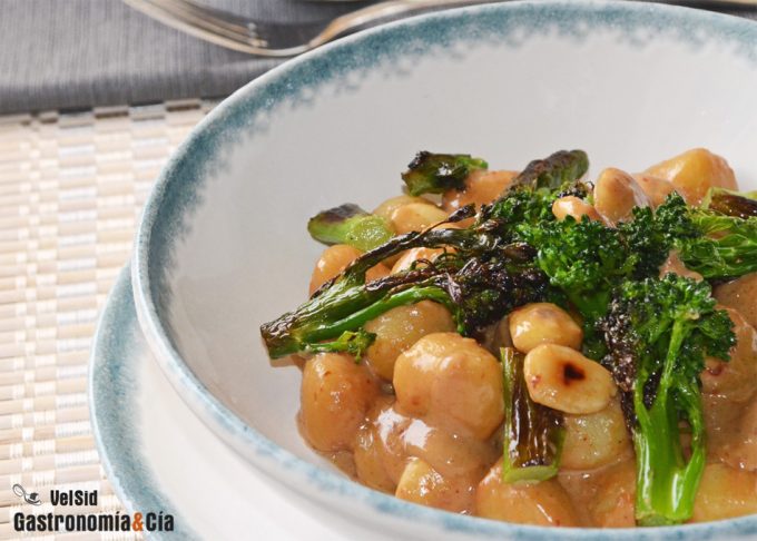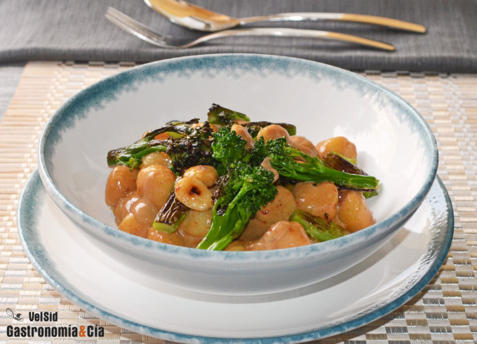 Gnocchi con bimi y salsa cremosa de soja y jengibre