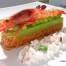Sobre la gamba haremos una fila cromática con la pipirrana, disponiendo en orden de color y finalmente añadir la cabeza frita a un lado de la gamba como formando una T. Decorar con unos brotes de hinojo y una rodaja de piparra sobre la cabeza de la gamba frita.
