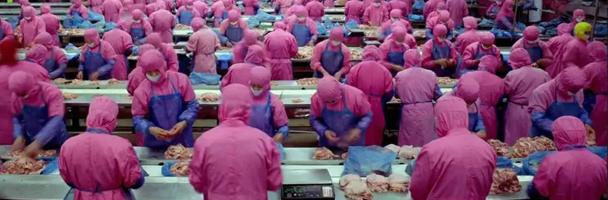 Este fragmento del documental Samsara permite sacar conclusiones, para unos será un sistema muy eficiente, adecuado para satisfacer las necesidades alimentarias de la población, para otros el sistema es frío y carente de respeto por el bienestar animal.