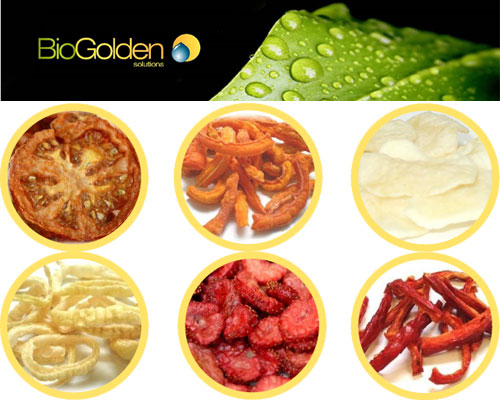 A través de Andalucía Investiga podemos saber que gracias a la nueva tecnología utilizada por Biogolden, el tiempo de secado se reduce, dependiendo del producto, hasta en 20 minutos en alimentos que requerían una hora. Por otro lado, la temperatura que se debería utilizar también se reduce pasando de los 70º C a los 40º C, lo que conlleva a un ahorro energético significativo. El sistema de esta empresa, combina la desecación o deshidratación con la CPI (caída de presión instantánea), los alimentos en cuestión son sometidos durante un determinado tiempo a un vacío que permite mejorar la calidad de la textura y además conservar las propiedades organolépticas y nutricionales de cada alimento, la presentación puede ser en tiras, láminas, rodajas, etc.