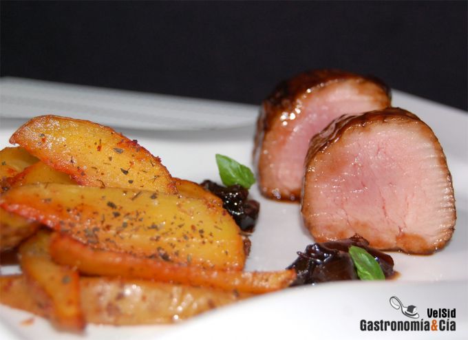 Hemos acompañado el solomillo con unas patatas horneadas, especiadas y cortadas en gajos con su piel, nos gustan como guarnición de muchos platos, pero siempre las podéis hacer a vuestro gusto, unas Patatas Hasselback o Hasselbackpotatis acompañarán muy bien al Solomillo glaseado con malta.