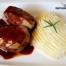 Corta el solomillo en rodajas de uno o dos dedos de grosor. Sirve el Solomillo glaseado con malta junto a las patatas horneadas, acompaña también con la cebolla caramelizada recordando retirar las guindillas previamente. ¡Buen provecho!