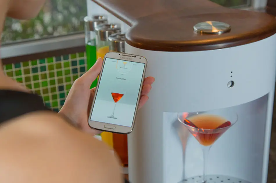 Somobar es un pequeño robot ideal para quienes quieren disfrutar de los cócteles pero no son especialistas en su preparación, bastan cinco segundos para que el robot prepare una de las más de 300 recetas de cócteles y combinados presentes en la base de datos de la app que controla el dispositivo.