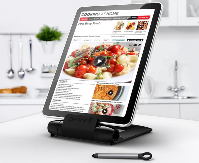Cuando lo que se necesita es un pequeño accesorio que se pueda guardar ocupando poco espacio, que sea seguro y práctico para sostener el iPad o cualquier otro tipo de tableta, mientras estamos cocinando, la solución se encuentra en soportes como el que ha diseñado Prepara, firma especializada en utensilios de cocina de la que hemos conocido varios accesorios y diseños interesantes, se llama iPrep.