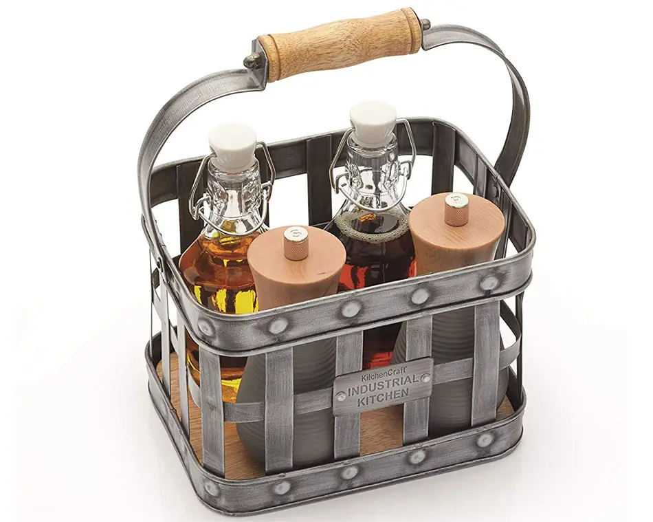 De todos modos, el creador de este soporte para condimentos, Kitchen Craft, lo denomina Condiment Caddy, además de concretar que es un soporte para condimentos de metal y madera de su línea de productos ‘Industrial Kitchen’. Así que además de este convoy, disponen en su catálogo de varios accesorios y utensilios de cocina de este particular estilo vintage.