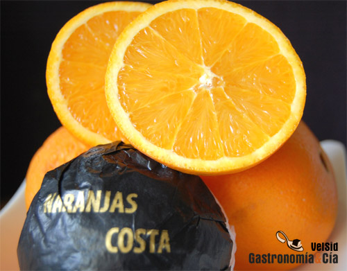 Se pela la naranja y se corta en trozitos que se colocan en un vaso, con un poco de azucar. Otra opción es cortarlas en rodajas con azucar y quemarlas, así queda «caramelizadas». ¡RIQUISIMAS!