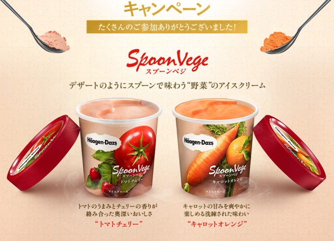 A partir del próximo 12 de mayo el mercado japonés contará con los nuevos helados Häagen Dazs, el que combina la dulzura natural del tomate con el sabor afrutado de la cereza, y el que armoniza el sabor cítrico de la naranja con el duzor de la zanahoria. Como sabemos, el tomate es en realidad una fruta aunque se consume como hortaliza, y la zanahoria es una de las hortalizas que habitualmente se utilizan en la elaboración de postres por el sabor que ofrece.