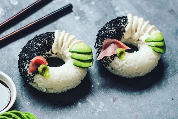 Hace bastante tiempo que conocíamos el sushi a la mexicana, y más recientemente descubrimos el burrito de sushi o sushi burrito, y en estos días nos hemos topado con el Sushi Donuts, y lo que nos falta por ver… Las redes sociales, concretamente Instagram una vez más, está empezando a llenarse de #sushidonut, y algunos medios de comunicación como este, se están haciendo eco de esta nueva tendencia.