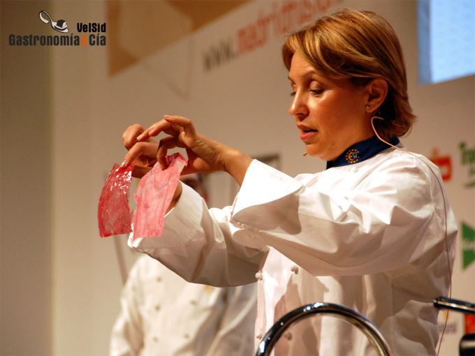 La propietaria y chef del Restaurante La Finca Susi Díaz, mostró en Madrid Fusión unos sugerentes aperitivos con Salazones de Pescados. Fue una de las demostraciones culinarias que muchos esperábamos, conociendo su trabajo a través del programa Proteína Marina de Canal Cocina, era indispensable verla en directo.