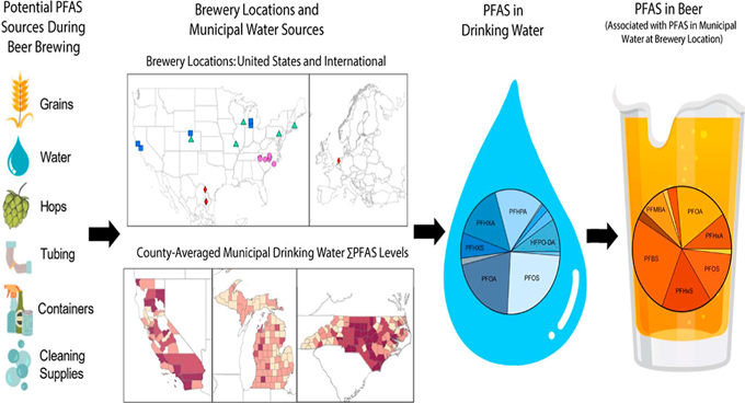 Los responsables de la investigación explican que la distribución de la contaminación también muestra un patrón geográfico, ya que las cervezas fabricadas en zonas con problemas de agua contaminada, como algunas zonas de Carolina del Norte, Michigan o California, tenían unas concentraciones más elevadas de PFAS.