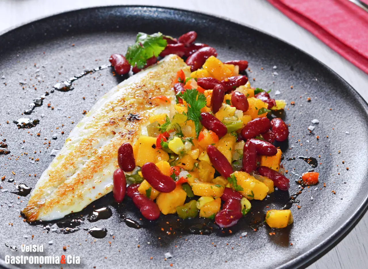Lubina con alubias y salsa de papaya, una receta sublime y exquisita