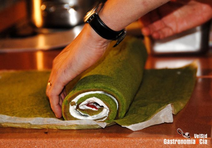 En la galería de imágenes podéis ver todo lo que os contamos, la constante labor de Takashi Ochiai durante su ponencia, dulces como el Rikyu Manju, unos pastelitos de masa elaborada con harina y azúcar muscovado, el que le da ese color, rellenos de soja confitada, el Montblanc, pastelitos de pasta philo rellenos de crema de almendra, crema y pasta de castaña, los bombones de verano, rellenos de ganache de fruta de la pasión, de fresas, con yuzu… y el Bizcocho de té matcha relleno de nata y fresas.