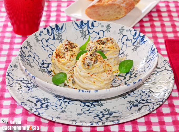 Cuando se cocina una buena pasta italiana, basta con utilizar un buen aceite de oliva virgen extra, alguna especia o hierba aromática y un poco de queso para disfrutar de un plato delicioso, de hecho, es como la comemos más a menudo, y la pasta con le briciole es otra de nuestras máximas preferencias. Pero a veces apetece más una salsa cremosa, láctea, pero rápida de elaborar, y últimamente no recurrimos a la nata para estos casos, reducimos el tiempo de cocinado y conseguimos una salsa deliciosa con queso crema, probadlo con estos tallarines con tomates secos y semillas de cáñamo, es una receta sencilla y exquisita para cada día, es decir, para diario, y se tarda cinco minutos una vez que está cocinada la pasta. Así que, si elegís tallarines frescos, en diez minutos tenéis la comida en la mesa.